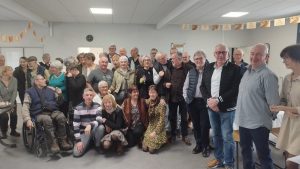 Notre doyen Alain Cospérec a reçu des mains du président une jolie photo du groupe qui avait effectué la sortie à Locuon au mois d’octobre (voir autre article sur le site) , prise devant son ancienne école.